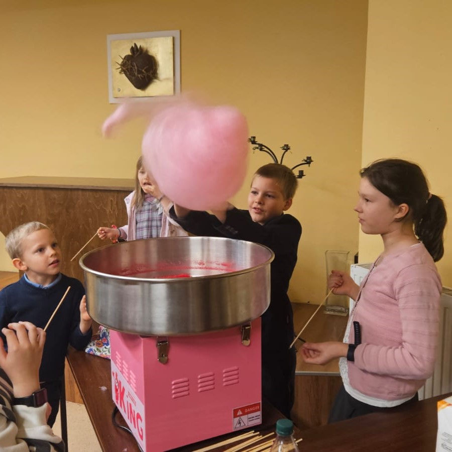 Atrakcje dla dzieci Wata cukrowa Kącik zapałczany Malowanie na folii Domki z kartoników Sekcja sportowa Kącik plastyczny Zabawy animacyjne Strój Klauna i Misia Balonowe zwierzątka Sekcja „budowlana” Godzina z Panem Kleksem Ziemniaczane pieczątki Drewniana szachownica Stanowiska szachowe Budowle styropianowe Wycinanie w drewnie Drewniane kosteczki Wazon z gwoździ atrakcja atrakcja